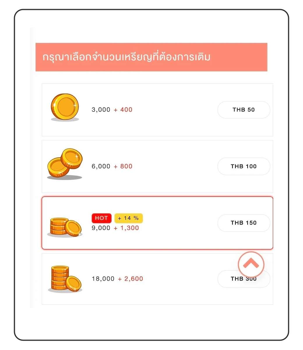 4. เลือกราคา/จำนวนเหรียญที่ต้องการ จากนั้นเลือกเมนู ชำระเงิน