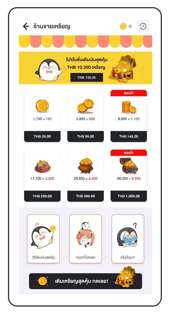 วิธีเติมเหรียญบนแอปพลิเคชัน