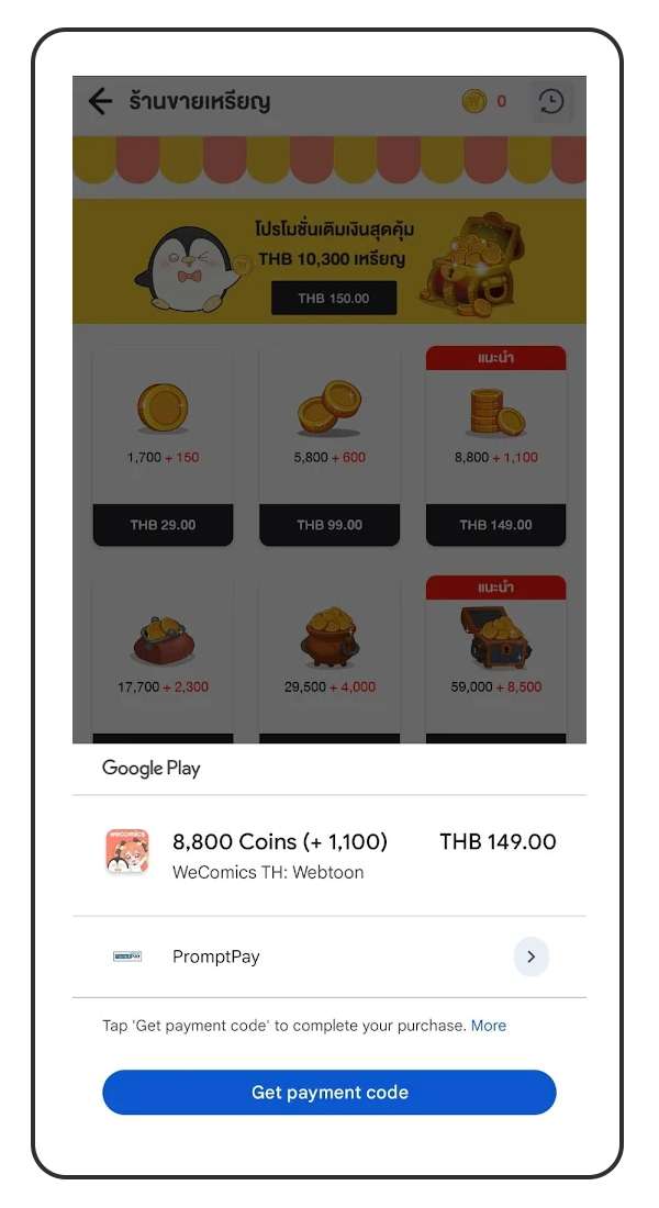 5. ระบบจะพาไปยังหน้าชำระเงิน เมื่อดำเนินการเรียบร้อยก็จะได้รับเหรียญ